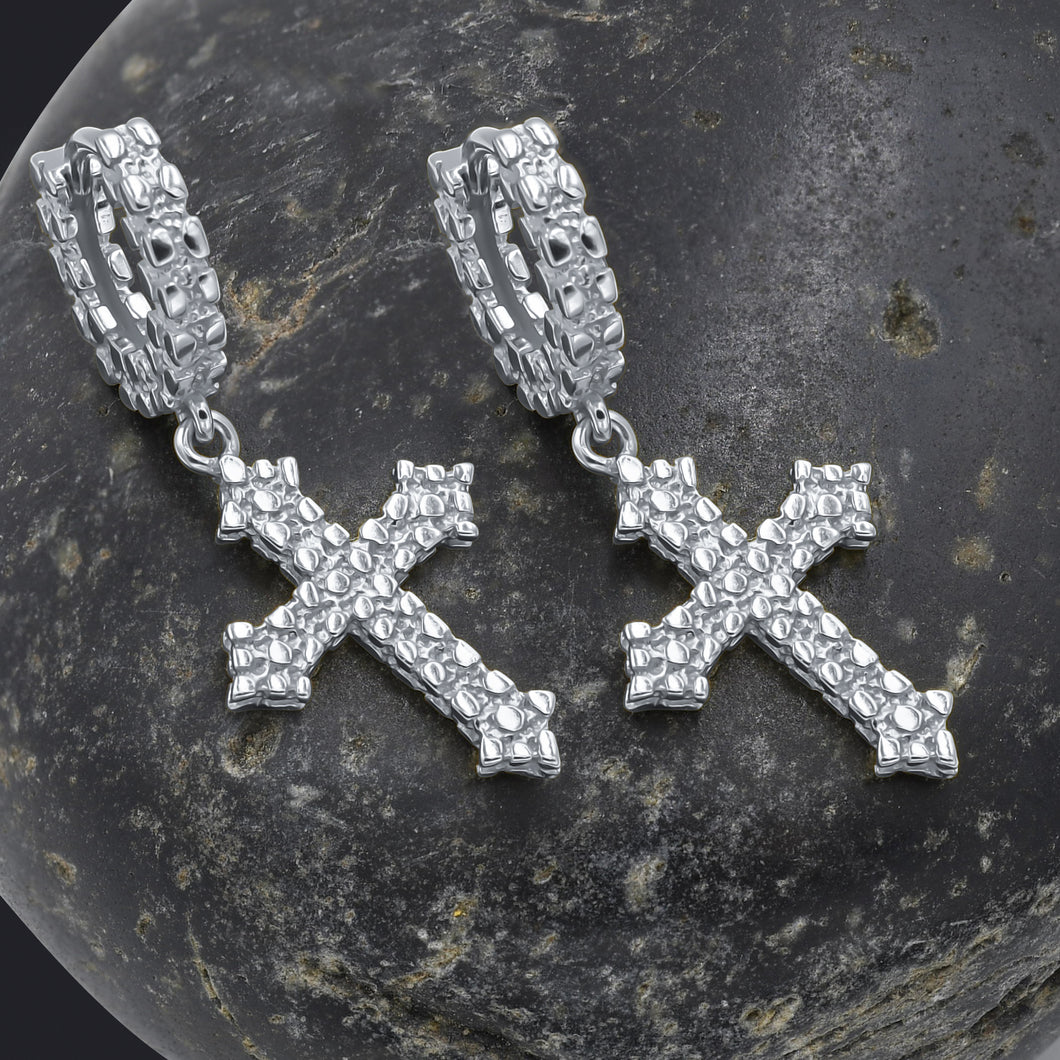 DOMENIC; Ladies should never go without earrings. These devout hoop earrings with a cross sign perfectly epitomize the propriety and righteousness a woman possesses. Beautifully crafted with intricate cubic zirconia stones, these ear jewels are attractive, modish and inexpensive; all at one time. Make your life shiny like a jewel.