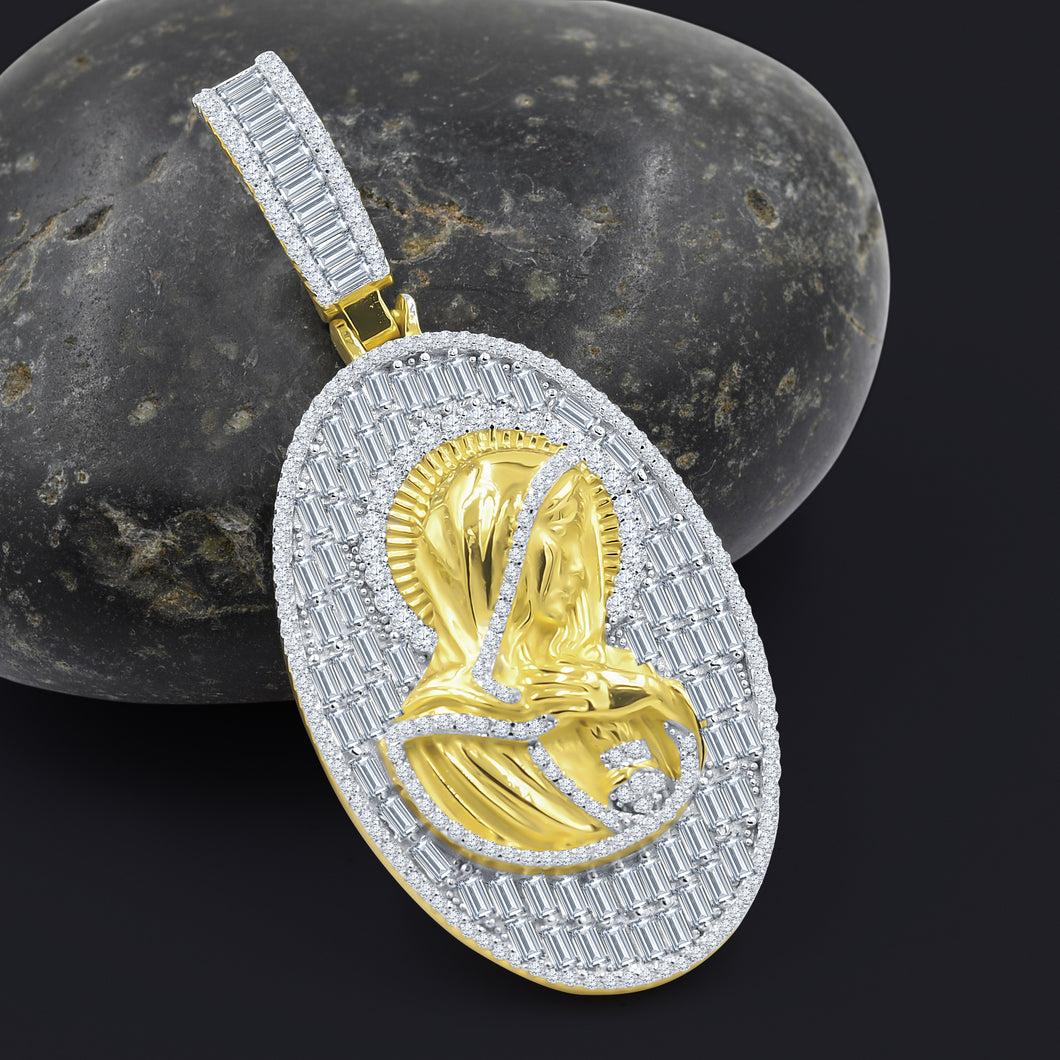 ALLORA; A pious christian declares the message of God through traits of resilience & love. This coruscant Jesus Mary pendant is designed to do just the work for a strong believer. Portrayed all over with CZ stones in its setting, and an astounding design, you can now honor your belief with a nudge of shine and flair.
