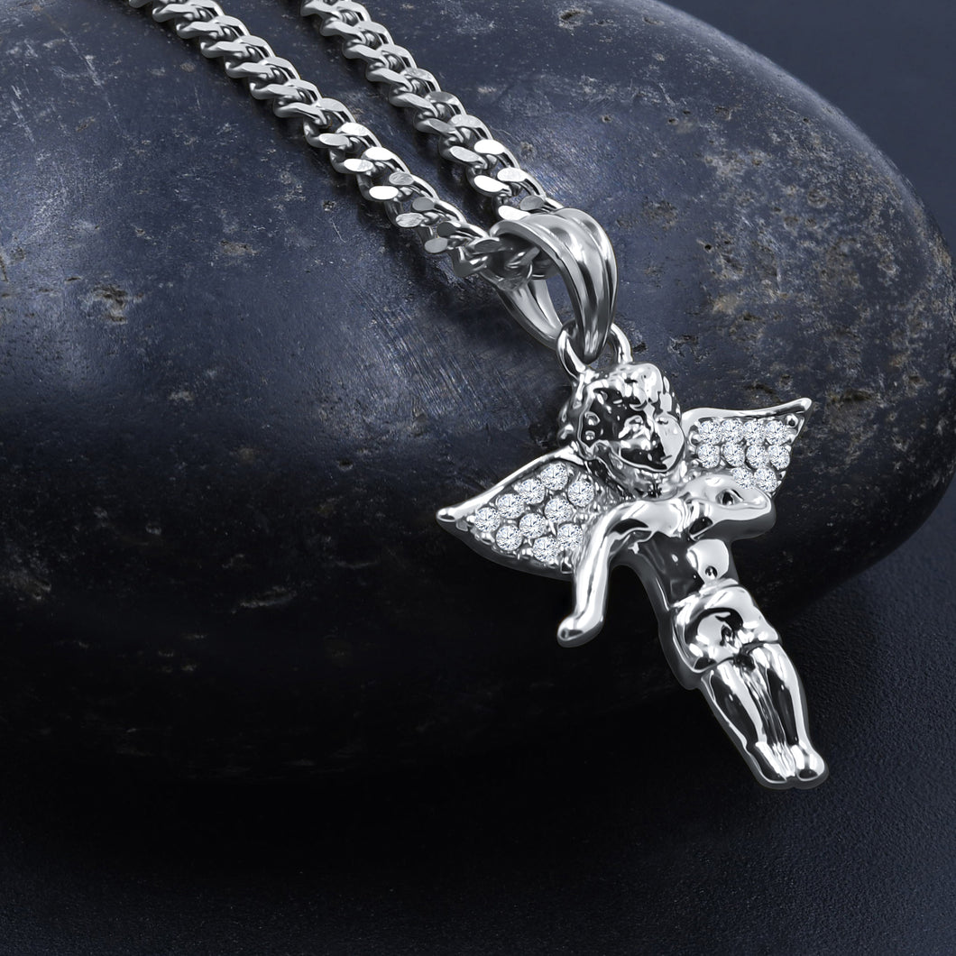 ANGELO; This angelic pendant with neck chain is a one unique piece to be worn all day round. This is a perfect blend of sophistication and style. Order it now and feel protected round the clock.