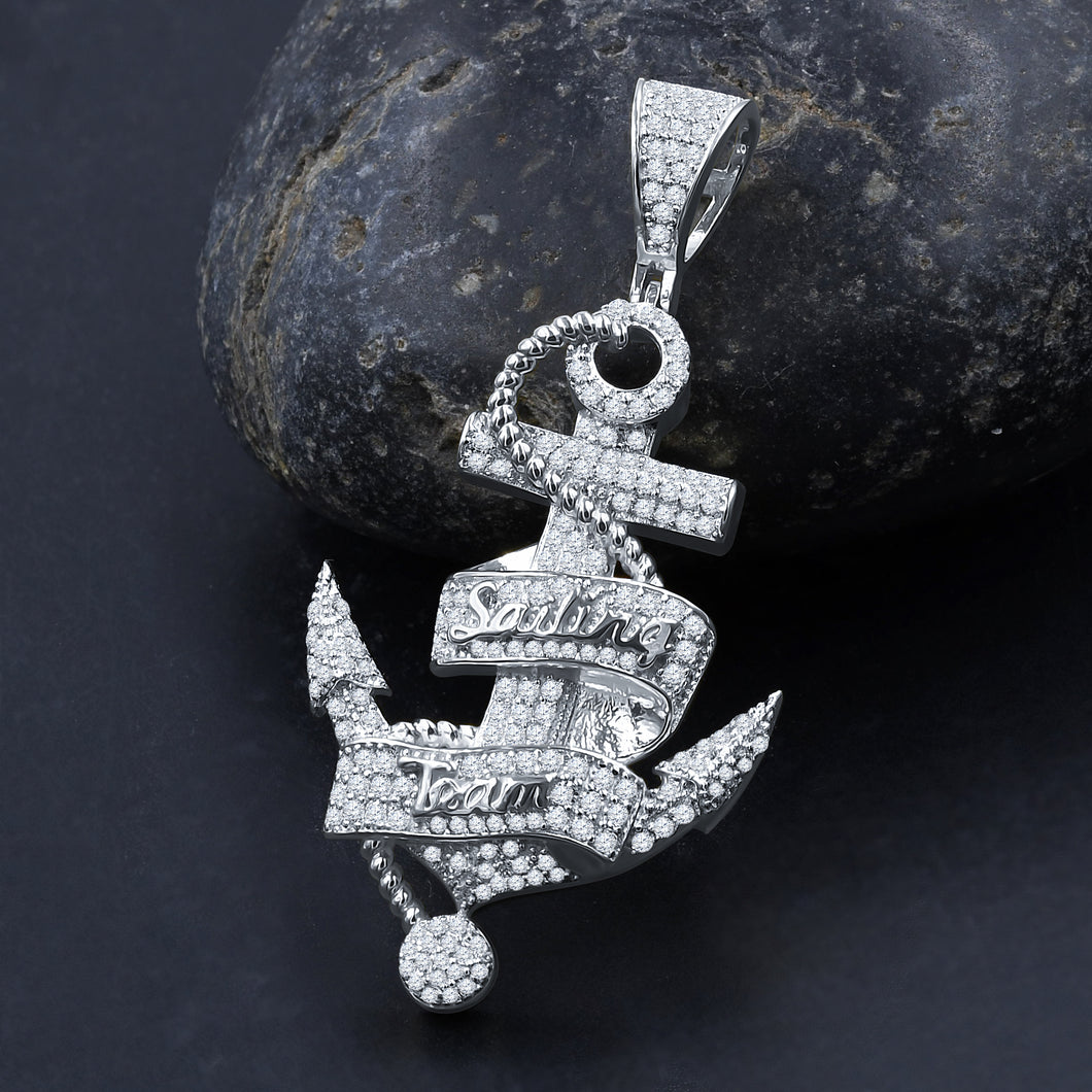 HELM sail you style away with this peculiar looking pendant which stands out in the aspect of distinctiveness and elegance. Aiming to help you add an ageless element to your innate style with a piece that is timeless, classic, this artistic piece is smashed all over with CZ stones, with a personalized message of ‘ Sailing team’. This pendant is one of its kind that is best suited for someone who is a yacht lover.