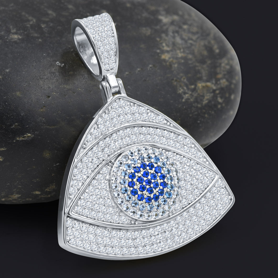 MOJO; this evil eye pendant is a striking piece of sterling silver jewelry that exudes both style and symbolism. The pendant features the iconic evil eye motif, believed to have the power to deflect malevolent glances and safeguard against the influence of the evil eye.
