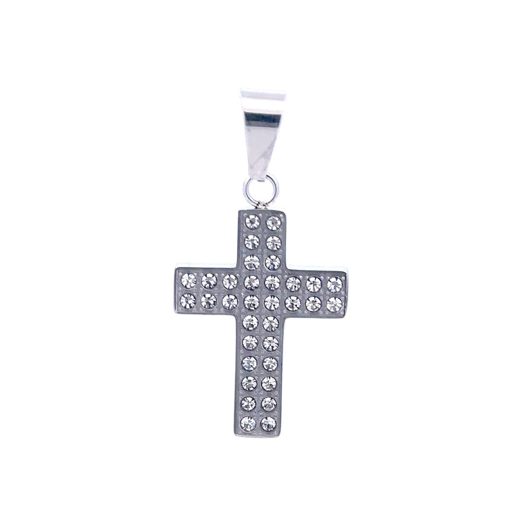 RHOSWEN; This Stainless Rhodium Steel Iced Out Pendant is a stylish accessory perfect for adding a touch of luxury to any outfit. Its stainless steel construction ensures durability, while the rhodium plating provides a brilliant, tarnish-resistant finish. The "iced out" design, featuring sparkling stones, offers a glamorous look. Ideal for everyday wear or special occasions, this pendant combines elegance and resilience, making it a versatile and eye-catching addition to any jewelry collection.