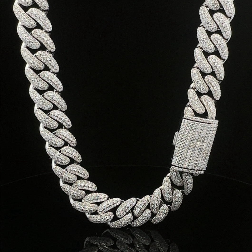 SCINTILLA 14MM 925 MOISSANITE RHODIUM ICED OUT CUBAN CHAIN | 993411