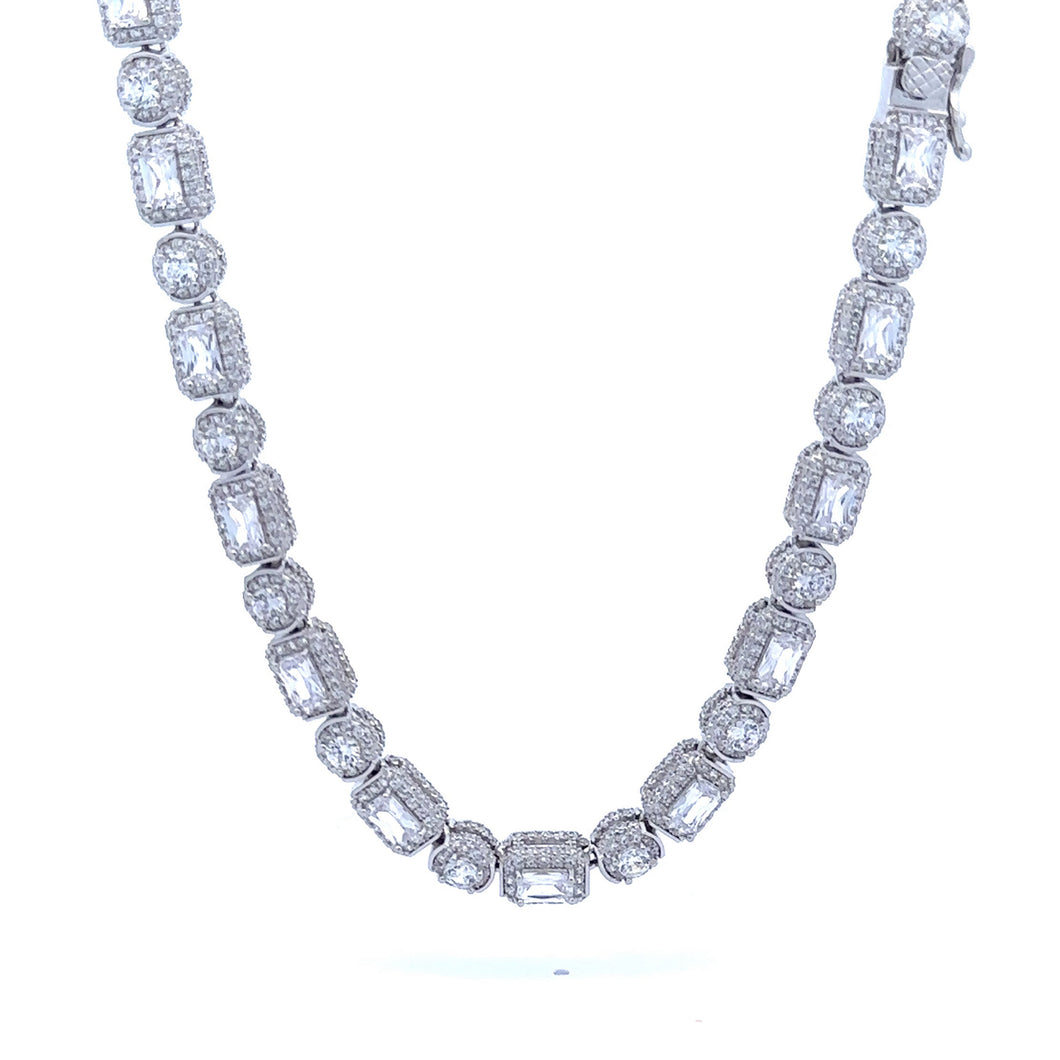 GAIUS; This 925 CZ Rhodium Iced Out Cuban Chain is a luxurious and stylish accessory suitable for various occasions. Its high-quality construction using 925 sterling silver and CZ stones ensures durability and a dazzling appearance. The rhodium plating adds a lustrous finish and protects against tarnishing. This chain is perfect for adding a touch of sophistication to casual or formal outfits, making it a versatile and timeless accessory for fashion-forward individuals.