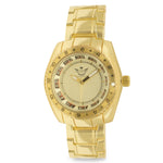 ROUELETTE adds fun to any time of the day when sporting this unique design as it's unidirectional bezel features an ancient numeric patter outer dial and a 24 hour time inner ring dial in color. The watch has a rugged yet casual dress feel with shinny gloss plating.