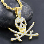 CRANEO; "Life is inherently risky. There is only one big risk you should avoid at all costs, and that is the risk of doing nothing." If you are an individual that seems to associate yourself with such a quote, then this accessory piece is just for you. Artistically designed skull with two swords beneath, it is portrayed all over with crystal stones in its setting, and an astounding design, so you can portray your deadly nature with a nudge of shine and fashion.