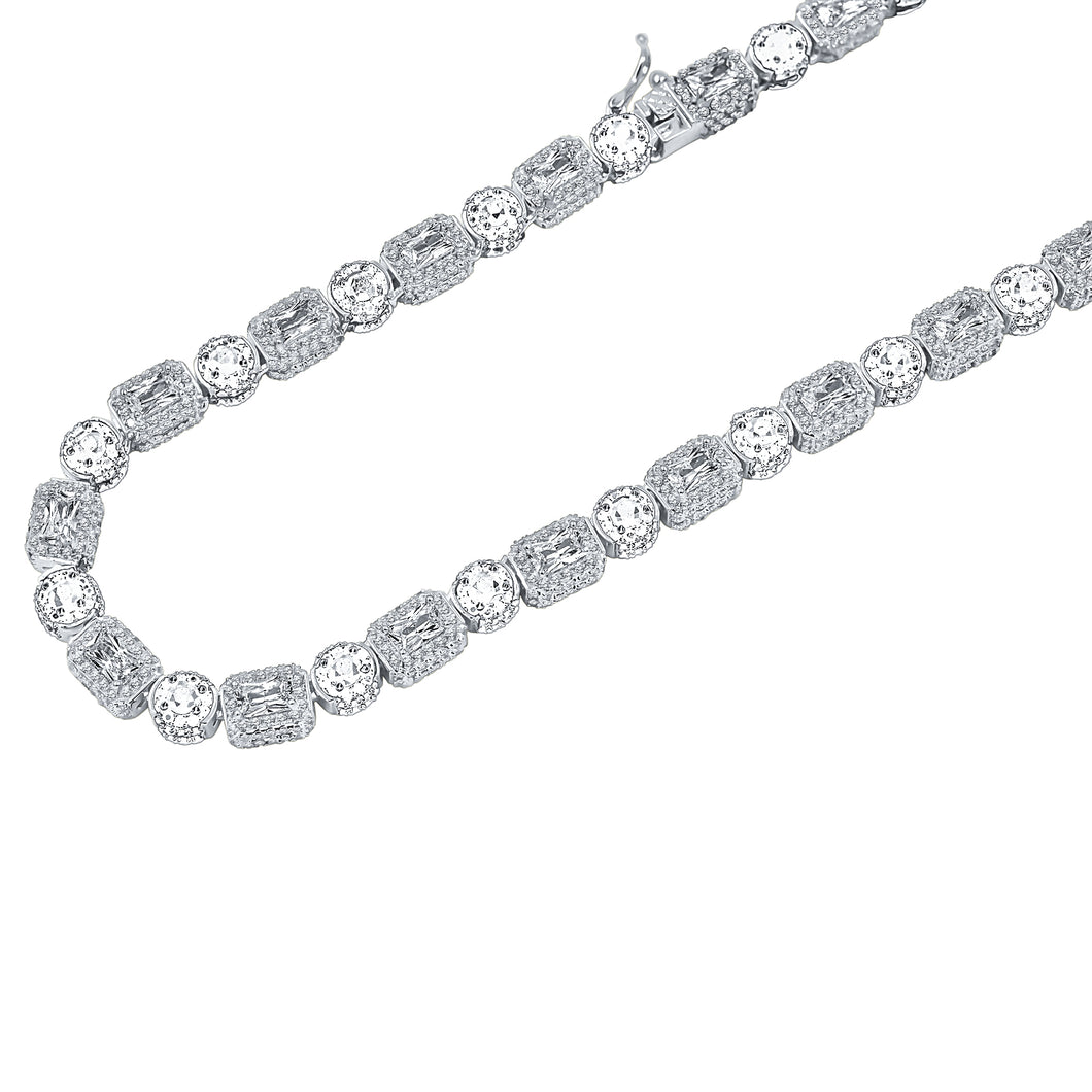 Ghost doll yourself up with this sizzling silver tennis chain. Luminous CZ stones in round cuts and geometric stadium outline are set across this heavy chain alternately. Nit-id and grandeur look, reasonable price, stupendous worth, this chain is a supreme finery for night-outs.