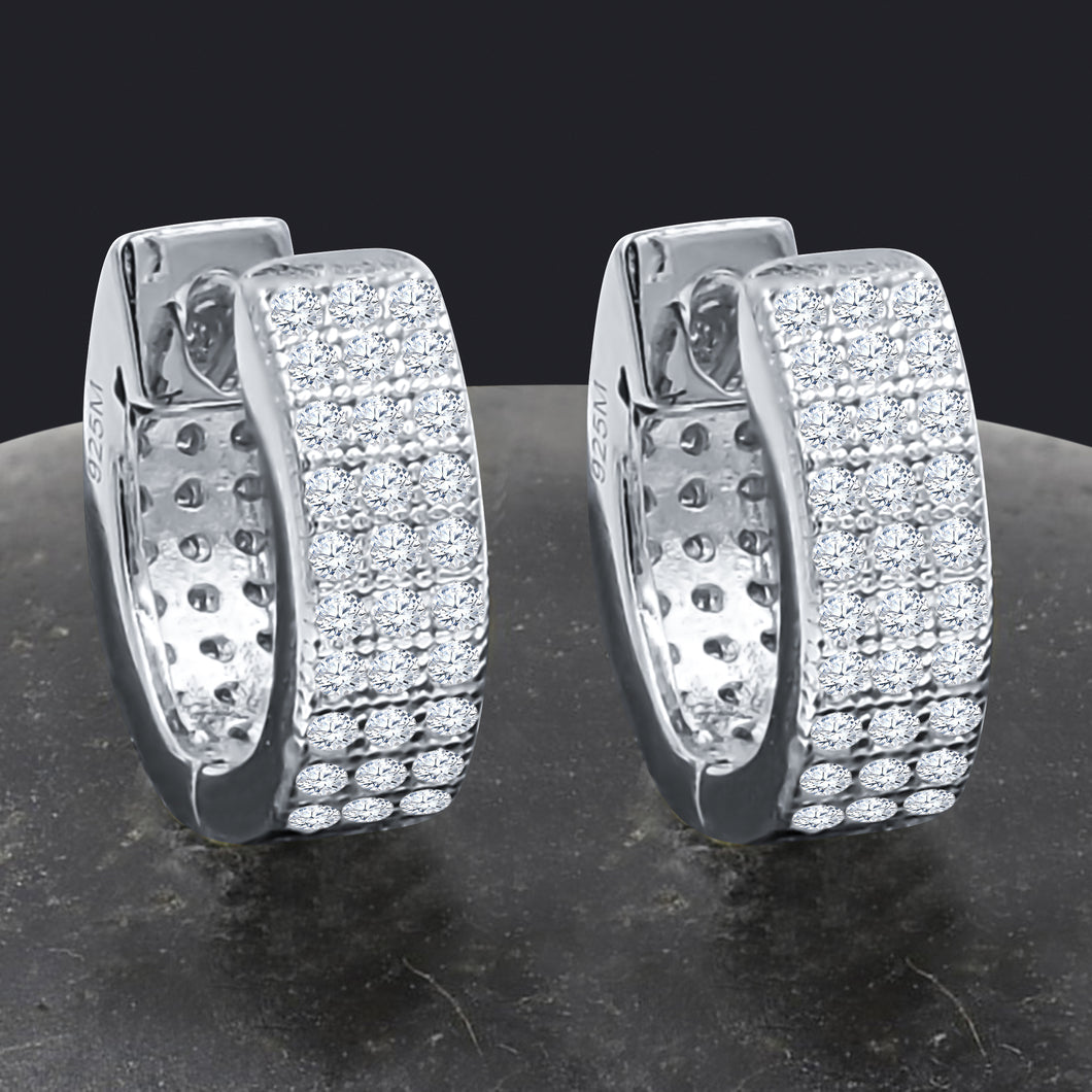 LUCIDUM; Hugging your earlobes, these silver ear huggies are designed delicately for you to be worn 24/7. Adorned with moissanite silver stones, this pair of earrings is stylish yet elegant. Order now!