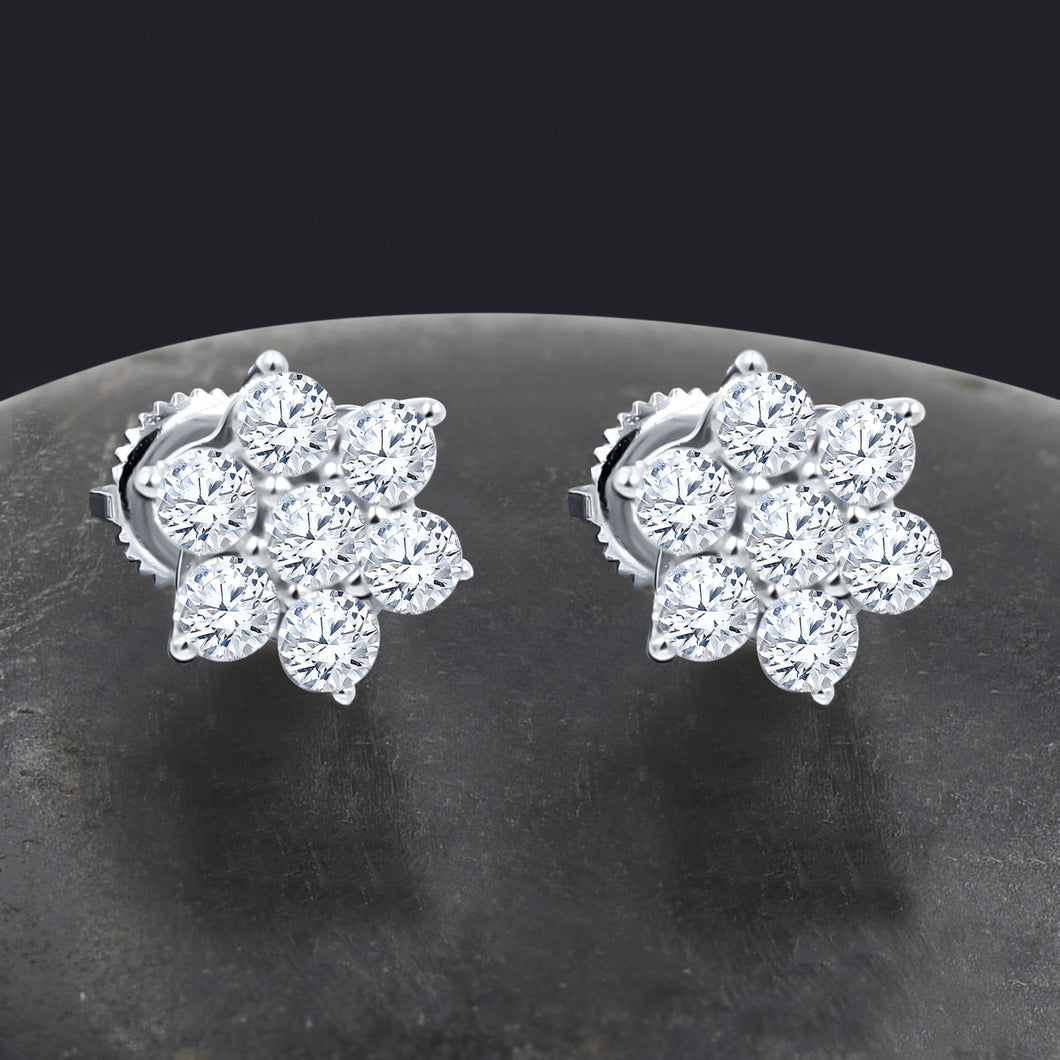 SPARKLING SNOWFLAKE; These sparkling snowflake moissanite stud earrings are the perfect way to add a touch of luxury and elegance to your look. The moissanite stones are brilliantly cut and sparkle like diamonds, while the white over all setting is both simple and sophisticated. These earrings are perfect for everyday wear or special occasions, and they are sure to turn heads wherever you go.