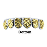 IMPRESSIONIST Stay right at top of the grillz game with solid golden color , steady glimmer grillz set. With its incredible luster, and gleaming appearance, in collaboration with blazing CZ stones in the setting, this set of grillz will give you an ultimate look of affluence and luxury. They are made to fit any teeth type without any hitch.