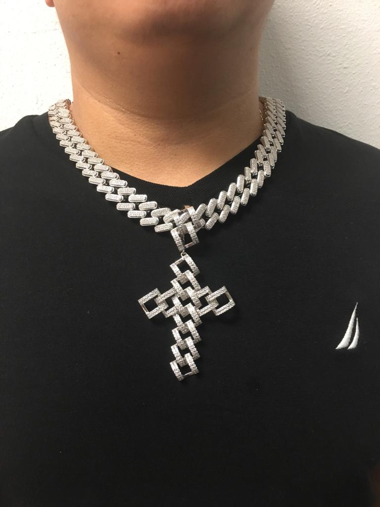 HYBRID boasts a 15MM busted iced out Cuban chain with a matching 15MM Cuban design religious cross. This stunning necklace is one of a kind and a definite conversation starter. Wear it with confidence and joy.