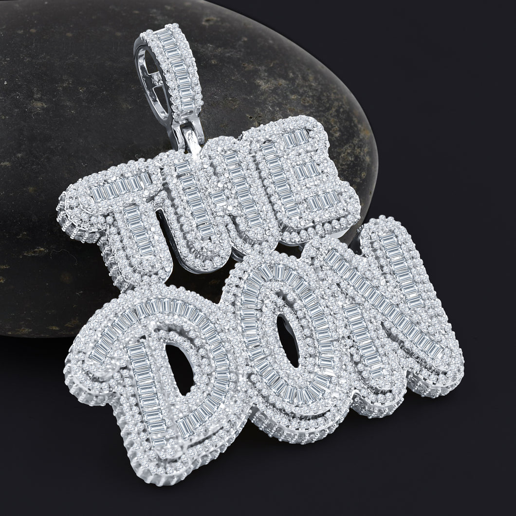 SWAY; A "Don" word pendant WITH CZ stones that features the word "Don" as its focal point. This pendant serves as a distinctive accessory that carries a sense of prestige and importance, representing a title or honorific that holds significance for the wearer.