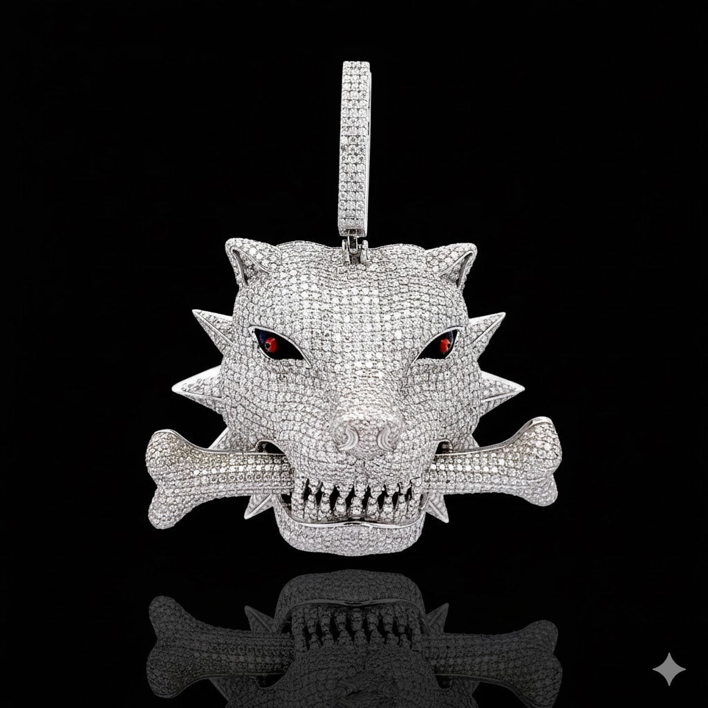CANINE 24.27 CTW 925 CZ MOISSANITE RHODIUM ICED OUT PENDANT I 997201