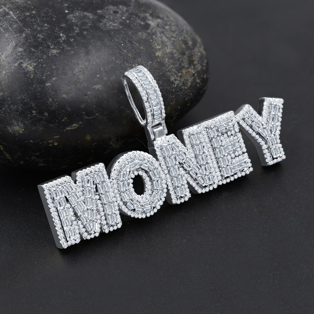 ARGENTUM; Everyone deserves to be treated special, just a little pampered to flaunt off your significance. Reign over the world of luxury wearing this precious radiating money pendant. Many glittering stones with spacious accents give this lettered sterling silver pendant a royal sheen, the final touch.