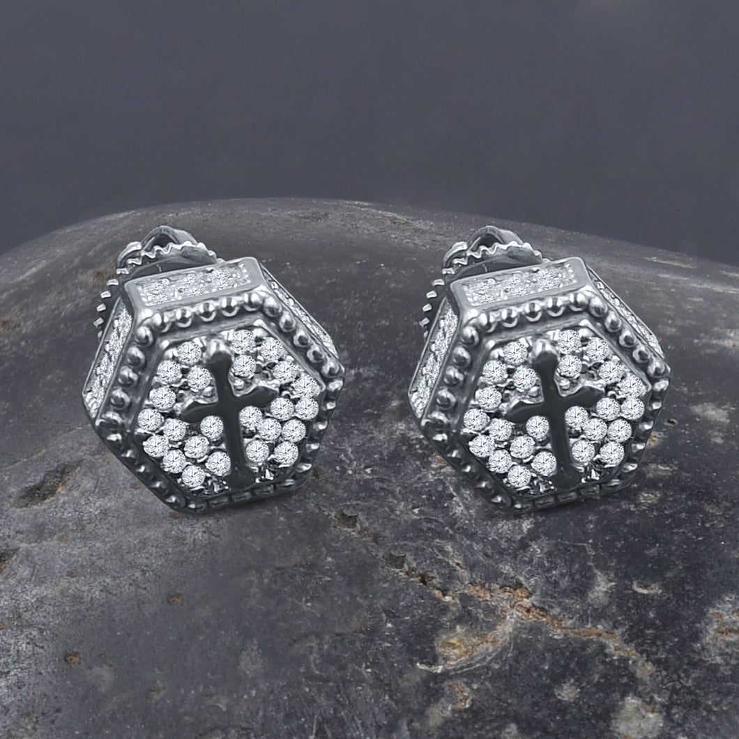 ETHEREAL do not ever settle for typical, be the queen of jewels. Add an essential trace of sacredness into your jewelry box with this shimmering pair of earrings. These studs adorned with silver CZ stones and a cross symbol in focus, are worth spendy however dependable, and are designed to be worn day and night. So you can make every day stylized and sound exemplary doing it.