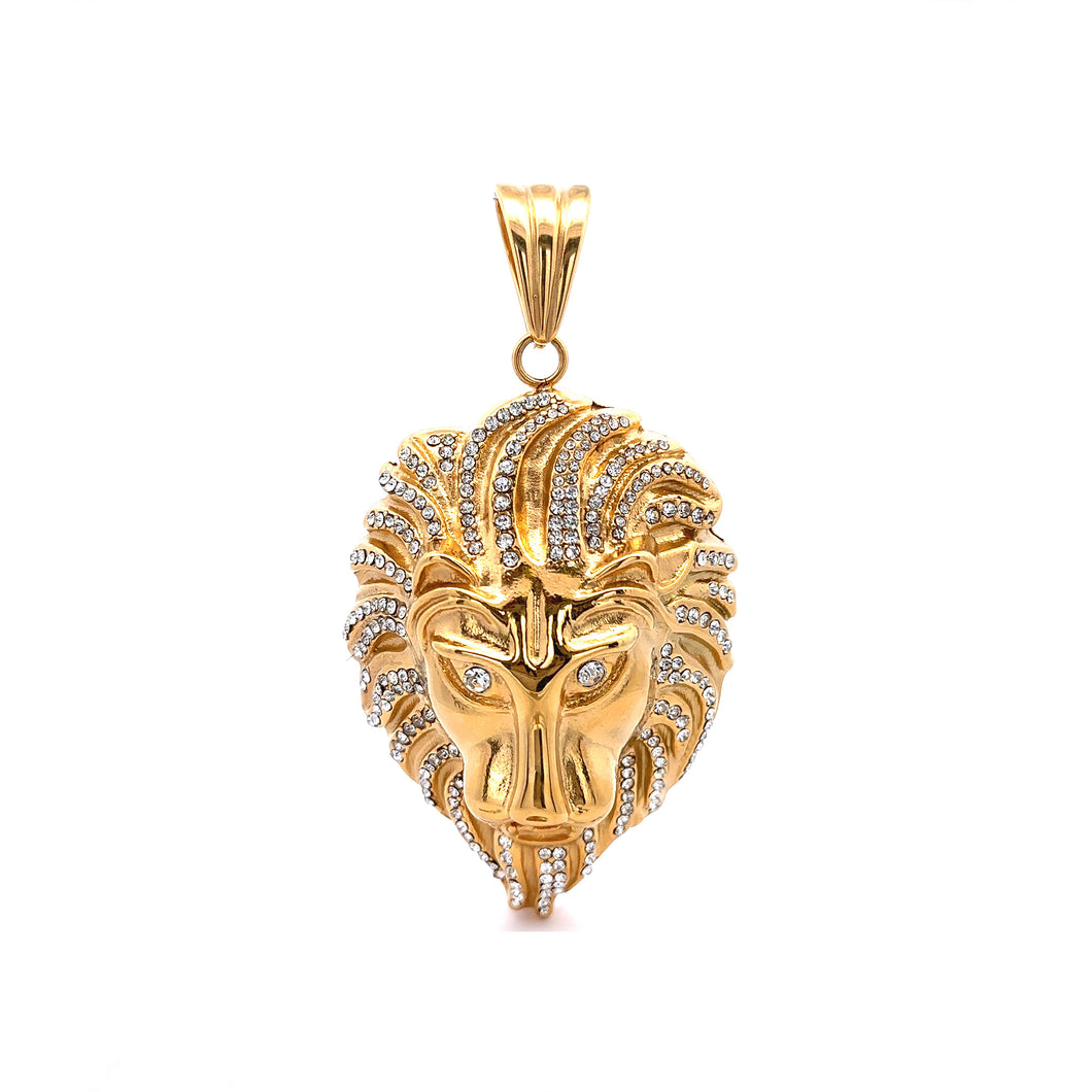 DRYSTAN; This Gold Steel Iced Out Pendant is a versatile and stylish accessory, perfect for elevating any outfit. Made from durable gold-plated steel, it features a dazzling array of stones that add a touch of luxury and sophistication. Ideal for casual or formal occasions, this pendant offers a blend of strength and elegance, making it a lasting addition to any jewelry collection while ensuring you stand out with its eye-catching sparkle.