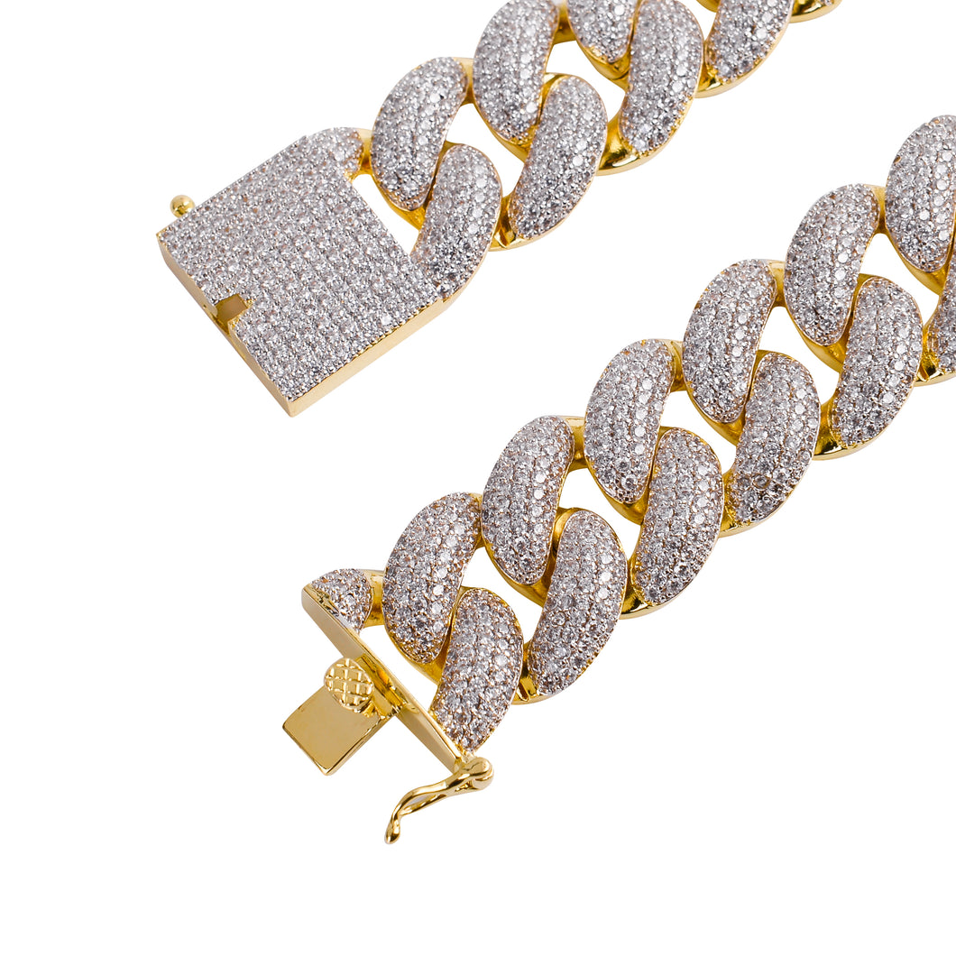 BAGGY fully embraces its essence of the word when it comes to describing this meticulously crafted solid cuban link chain immersed in cubic zirconia by artisans who employ nothing but perfection in each of their masterpieces.  This chain redefines luxury to its core for all cubano enthusiasts.  Wear it with confidence