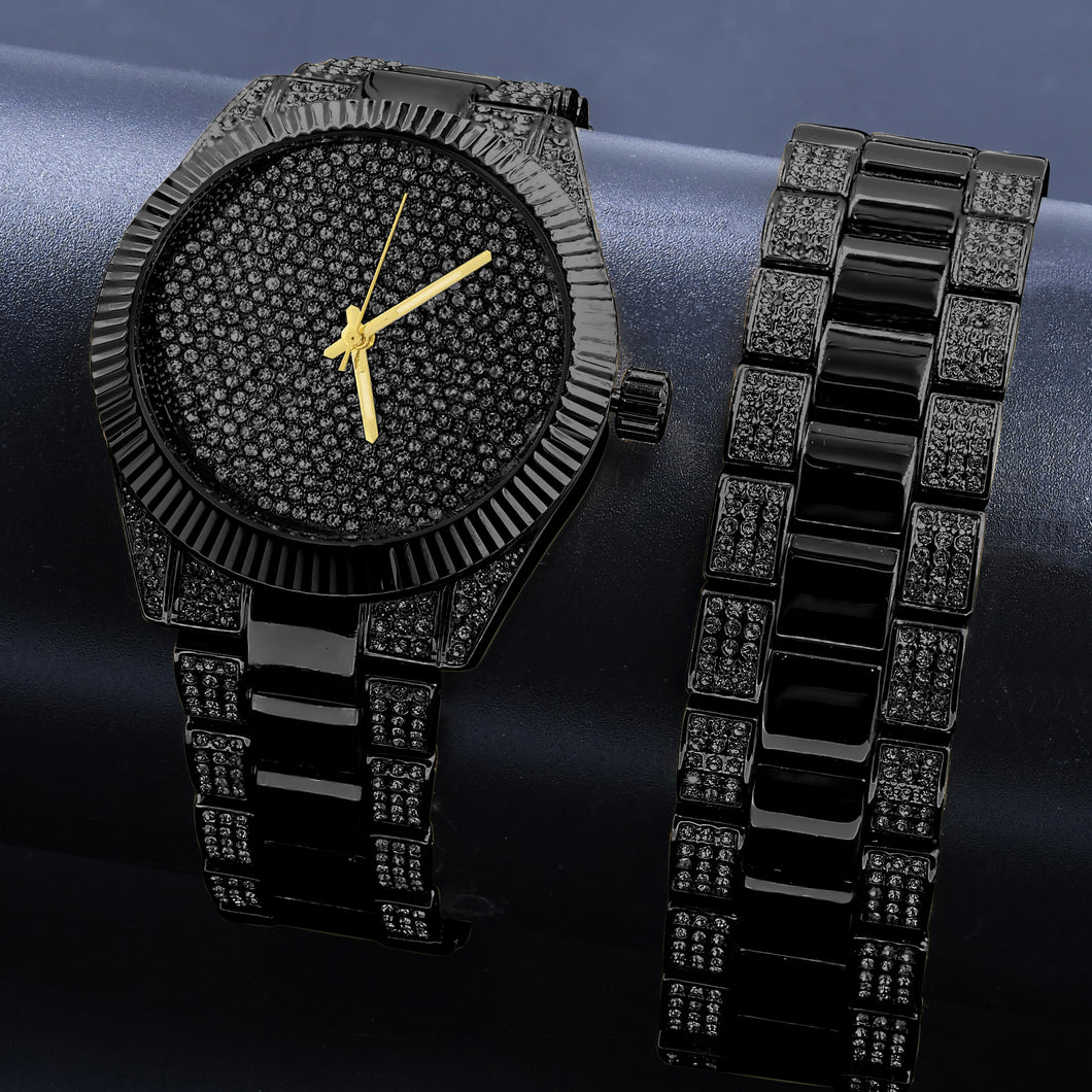 Personified experience the the bold luxury of timeless style with striking details & just the right amount of intrigue. Featured a glimmering dial with a border of polished metal surrounding it, where it captures light sending its dazzling radiance into a row of brilliant pave set gems. This watch is a fascinating and trendy style that can be given as a gift or sure to become a treasured keepsake. Its a perfect choice for someone looking for just light pinch of shimmer in their daily attire.