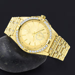 GLIMMER ; this round dial watch is a stylish and elegant timepiece designed for men who appreciate a touch of sophistication and luxury in their accessories. The dial is adorned with a deep, rich color, , which adds a sense of refinement. The watch hands are designed for precision and are also equipped with luminous elements for visibility in the dark. Wear it with style and feel confident!
