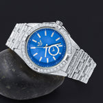 GLIMMER ; this round dial watch is a stylish and elegant timepiece designed for men who appreciate a touch of sophistication and luxury in their accessories. The dial is adorned with a deep, rich color, , which adds a sense of refinement. The watch hands are designed for precision and are also equipped with luminous elements for visibility in the dark. Wear it with style and feel confident!