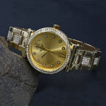REGALIA Masterpiece stuns the audience with its classic appeal, its slanted angled mysterious inner dial and it's subtle encrusted shinny indexes with crystal clear stone on dial. Wear it with confidence and enjoy.