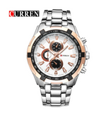 SUI GENERIS; Bringing you art of time in town because Curren crafts for your class. Bold and impressive dial with chronograph appearance, classy case & bezel are the attributes that won't let this timepiece go unnoticed. This analog sport watch with metal bracelet clasp features quartz movement. Life is short, buy more watches.