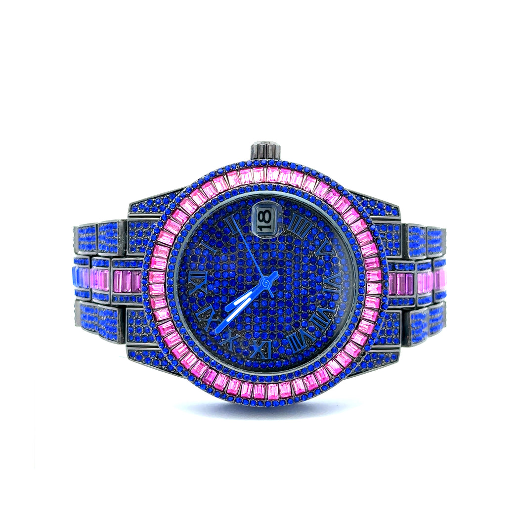 RAVIZ HIPHOP BLACK BLUE ALLOY ICED OUT MENS WATCH I 5629140