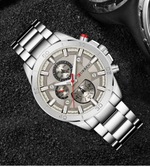 CONTEMPORARY; Curren men's chronograph with metal strap is much more than a splendid timepiece. Its round dial featuring three beautiful chronometers is a blend of manliness and grace that is not easy to resist. Befitting for any event, be it traditional or casual, this watch is sure to make an impact.