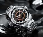 BUENO; Aiming for a timepiece that possesses both dimensionality & quintessential-ness? Then this watch is made to meet your exceptional standards. The seamlessly polished steel band and luxuriously designed bezel in the middle along with two sub dials in its design , the accessory adds an air of elegance to every ensemble. Striking dial details give this timeless style just the right amount of elegance and class.
