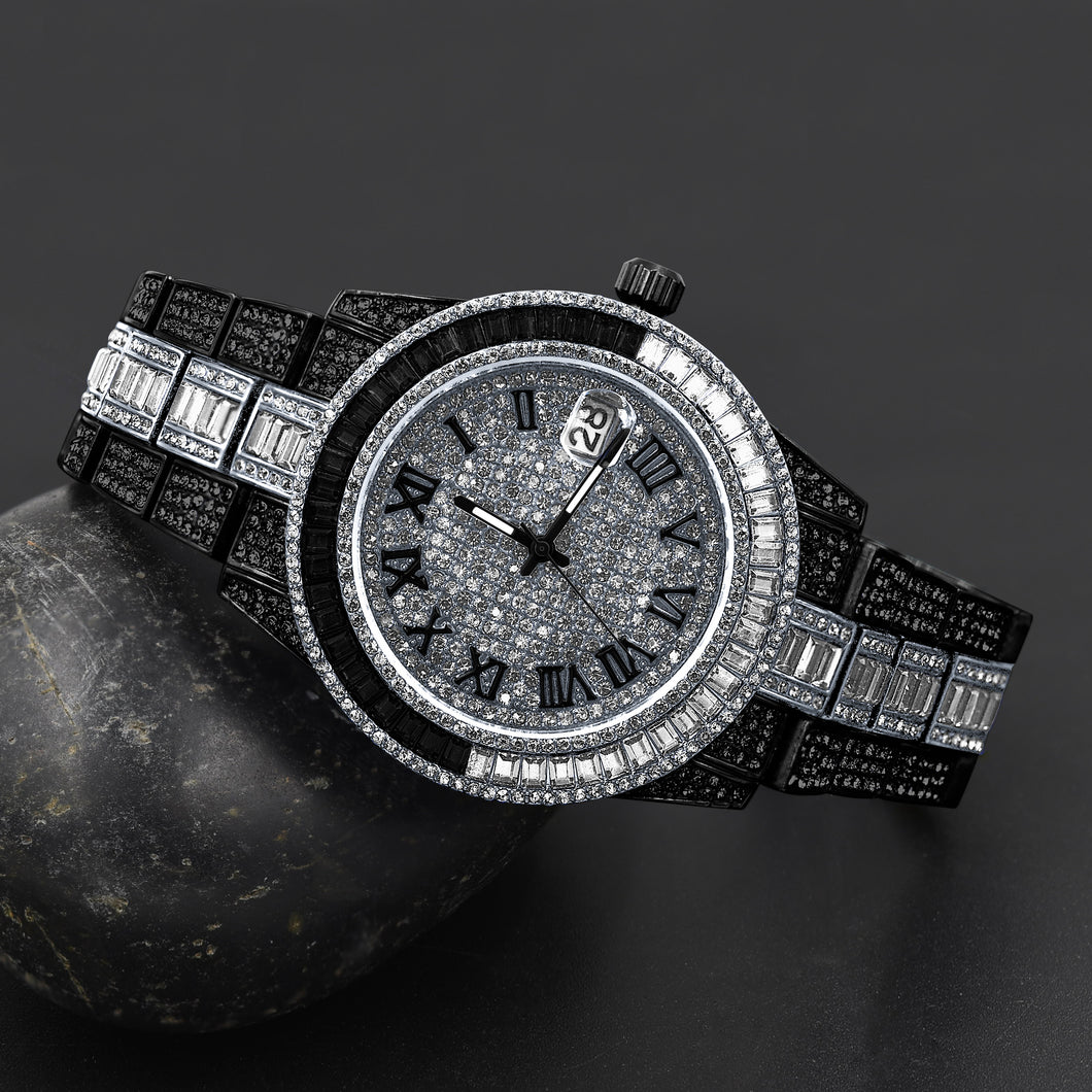 OYSTER; A watch is a style assertion designed to make you distinctively prominent among the crowd and this crystal timepiece is crafted to deliver you just that. Aberrant layout of intricate gleaming stones in both the bezel and the frame, in pair with coruscant bedazzling metal watch band, this ultra modern ticker speaks of no less of luxuriance & embellishment.