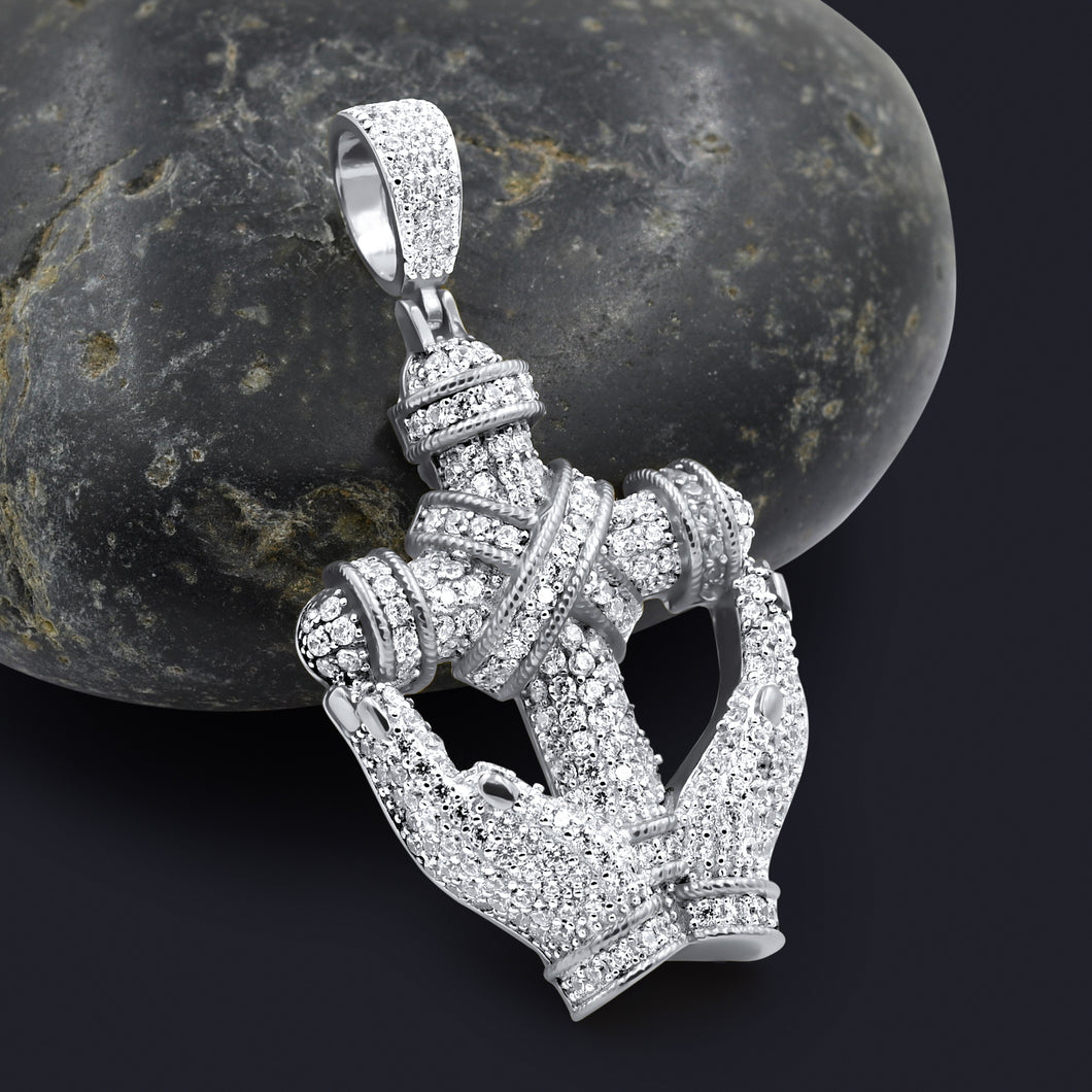 SANCTITUDE; ‘To endure the cross is not tragedy; it is the suffering which is the fruit of an exclusive allegiance to Jesus Christ.’ Immaculate about Christianity with this effortlessly smashing hand protected cross pendant. Embellished with right touch of flare and finesse with shimmering CZ stones in cross setting, it represents accurately about defense, preservation and the redeeming benefits of his passion and death.