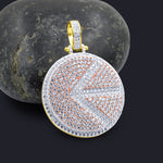 SYNCHRONIZED; Everyone deserves to be treated special, just a little pampered to flaunt off your significance. Reign over the world with this precious round shaped flabbergasting pendant. Many glittering CZ stones with spacious accents give the pendant and your look, a royal sheen, the final touch.