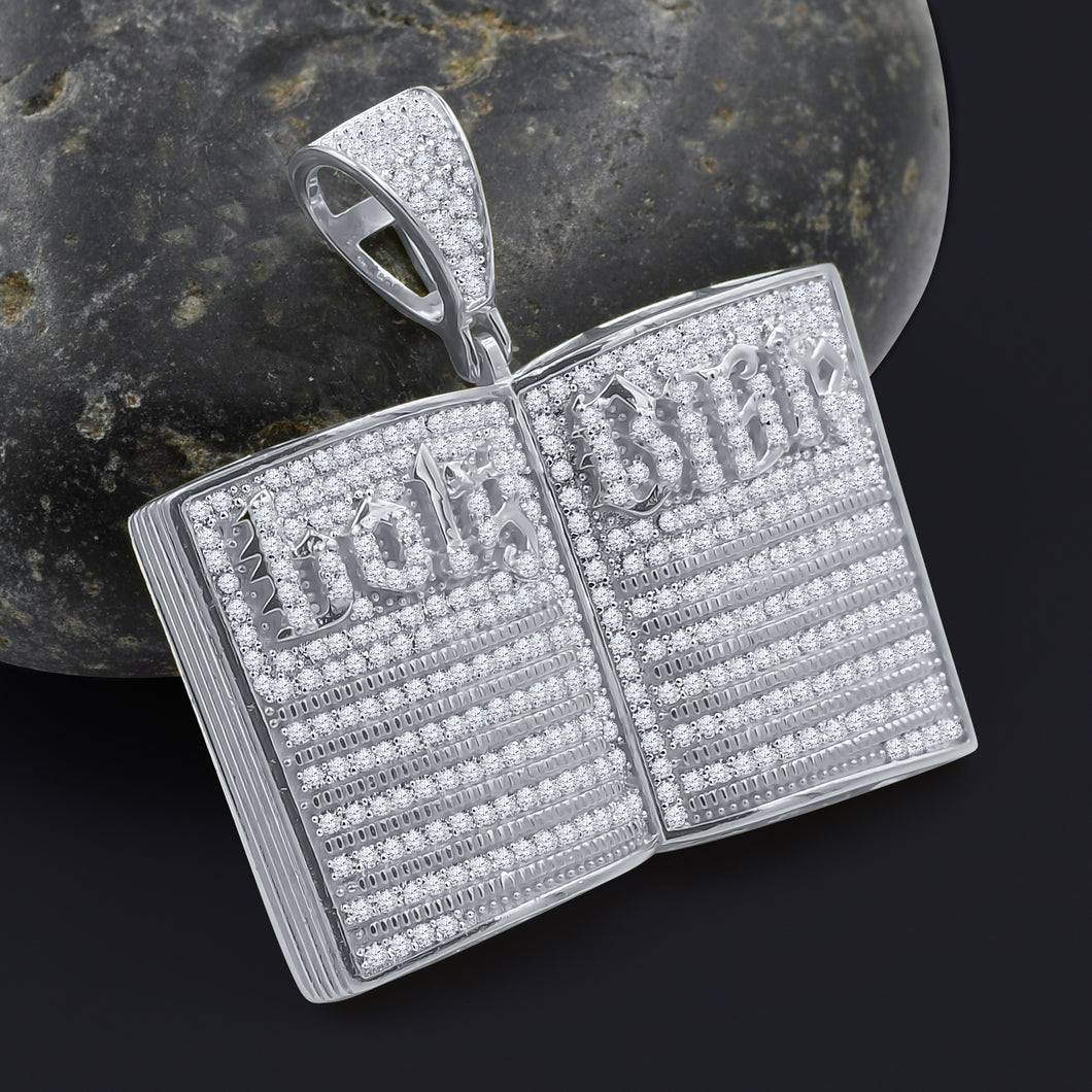 ELYSIAN; Fill your mind with God’s words and you will have no room for Satan’s lies. No path of redemption can make a detour around it and this is why we present to you this prolific & bedazzling artifact of Bible book. With edified dazzling stones in pattern of a book and adjoining array of glimmering stones, you can wear your faith close to your heart with this meaningful flustering holy locket.