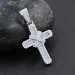 FIDES; Protect your faith near your heart with this distinctively shaped double cross designed locket which symbolizes spirituality, chastity and transparency. Adorned all over with flaring CZ stones with an attached small cross in its mid, it creates an alluring yet a conservative touch for any devout and a pious individual.