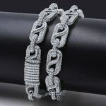 RAVISSANTE; Life is too short to wear boring jewelry. This hefty Brass chain is all about a thing that blings. Made from series of interconnected links and adorned with tiny cubic zirconia stones, this accessory is a perfect companion for you in night-outs. Grab it now because a right piece can make your day!