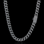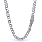 WIZARD; This premium quality silver cuban chain is trendy and long lasting. Adorned with white moissanite stones beautifully, this piece is sure to make a statement. Get your hands on it before it runs out of your access.