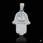 FULGEO; This venerated silver pendant featuring brilliant moissanite stones is a perfect mix of piety and virtue. Uplift your worthy personality by grabbing this elegant piece of jewel. Let your jewelry talk about you. Ideal to be gifted to your friends, partners or co-workers, etc.