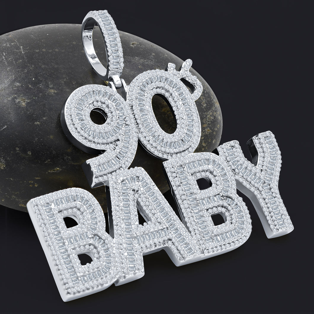 ABYSM; pendant feature the word "BABY" prominently displayed in a decorative font or style, with CZ stones incorporated into the design. Its a visually appealing piece of jewelry that gives a bold look to your appearance .