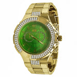 Yellow 2 Row Green Dial Iced out Bling Metal