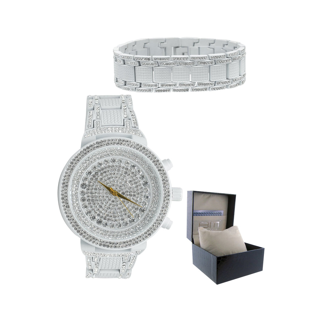 Bling Master Watch & Bracelet Ultra Bling Combo Set in a box, Solid Alloy Construction, Japan Seiko Movement, Japanese Battery, Splash Water Resistant, Case thickness 11-13mm, Case Diameter 41-45mm, Weight 250 grams, Watch Box accompanied.