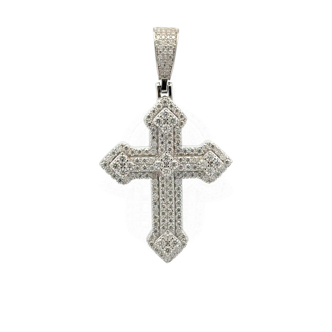 BURSARY; This CZ Rhodium Pendant Iced Out Pendant is a stylish accessory ideal for enhancing any outfit. Its rhodium plating ensures durability and resistance to tarnish, while the cubic zirconia stones offer brilliant sparkle and affordability. This pendant's elegance makes it perfect for special occasions or daily wear, providing a touch of luxury and sophistication without compromising on cost or quality.