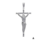 CRUCIFIX Sterling Silver 925 Pure Material with High Quality CZ with micropave prong-set. Pendant is 1.75 height and 1.25 width with large enough bell for a 3mm/4mm chain