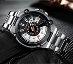Buoyant If you’re someone who looks for both intricate details & voguish look then this accessory is made to do just that for you. The vibrant blue and gold color complement each other in a beguiling way. Accompanied by blue framed dial, consisting of golden hour markers and small compass in the side, it presents an even refulgent appearance in combination with navy blue Protrusive band.