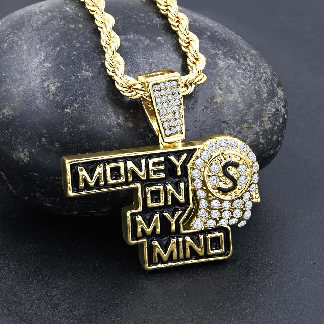 INCONTABLE; Everyone deserves to be treated special, just a little pampered to flaunt off your significance. Reign over the world with this precious radiating ‘Money on my mind’ pendant. Many glittering crystal stones with spacious accents gives this lettered pendant a royal sheen, the final touch.