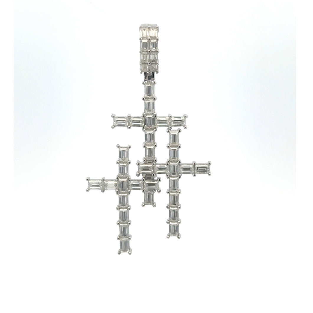 DWELLING; This CZ Rhodium Pendant Iced Out Pendant is a stylish accessory ideal for enhancing any outfit. Its rhodium plating ensures durability and resistance to tarnish, while the cubic zirconia stones offer brilliant sparkle and affordability. This pendant's elegance makes it perfect for special occasions or daily wear, providing a touch of luxury and sophistication without compromising on cost or quality.