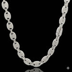 SUBLIME; This Rhodium Moissanite Iced Out Chain exudes luxury and elegance, perfect for making a bold fashion statement. Its rhodium coating ensures a brilliant, tarnish-resistant shine, while CZ stones provide unmatched sparkle and durability. This chain complements both casual and formal attire, adding a touch of sophistication to any outfit. Ideal for those who appreciate fine jewelry, it offers a stunning alternative to traditional diamonds.