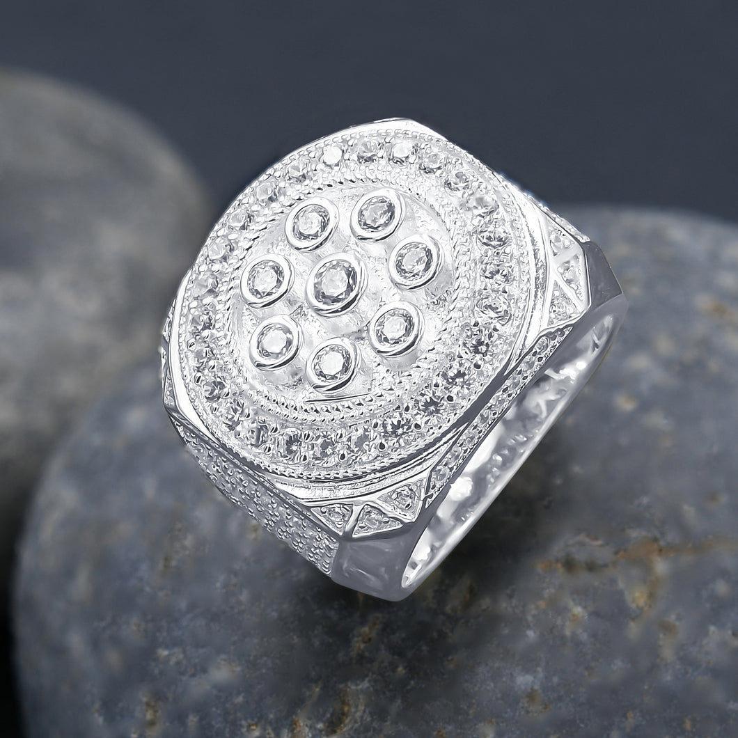 ENORMOUS Pure Silver Material 925 Ring with micro-pave CZ prong set, high quality CZ. Available in different sizes. All rings are sizable by a jeweler