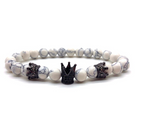 Eminence the crown is a very powerful symbol of authority and power, this bracelet live up with its title. With an elastic stretch fit of white impression beads, wear it up or down by itself or stacked with your other fine and fashion bracelets for the perfect arm party. The black polished crown bezels provides you with the right amount of masculine yet resplendent touch.