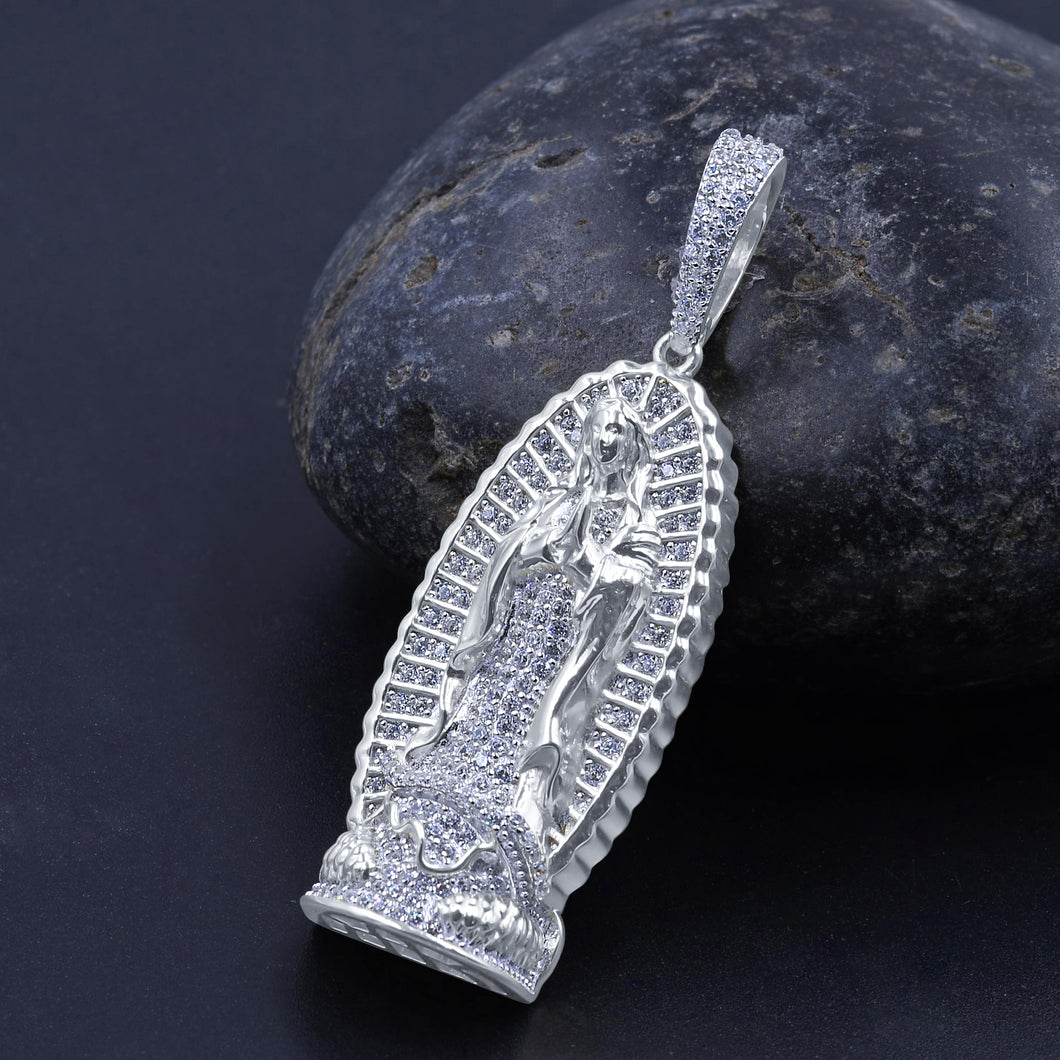 Immaculate unveil inspiration whenever you choose to seek it. This piece is a true relic of sanctity, this uniquely designed locket makes a truly rare appearance in your jewelry collection. This masterpiece is flooded with hand-set detailed CZ stones, to keep it beaming from all angles. Emanating purity, & piety, this golden polished artifact makes a great faith-based gift or a personal statement of your own devotion.