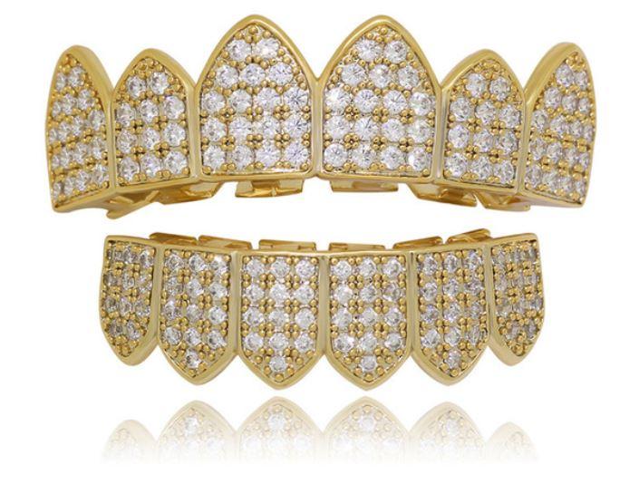 Hip Hop Gold Fully Iced out Micro Pave CZ Grillz